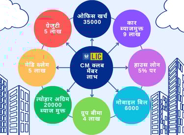 LIC एडवाइजर बन कर आप असीमित आय कमा सकते हैं व कैरियर ग्रोथ के लिए अलग अलग क्लब मेंबर बन ब्याजमुक्त कार लोन, हाउस लोन, ग्रुप बीमा,मेडिक्लेम,ग्रैजुटी आदि का लाभ ले सकते हैं।